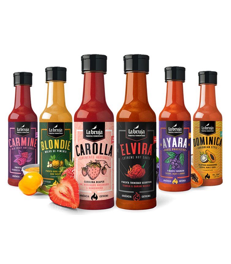 Nesse combo você leva os 6 molhos da Linha Especial Fermentada LaBruja. São 6 sabores únicos, todos produzidos artesanalmente com até 50% de polpa pura de pimenta: Qualidade Premium!