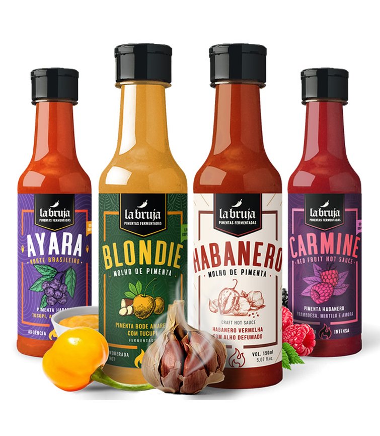 Nesse combo você leva nossos 4 molhos intensos fermentados, uma combinação entre sabor e ardência, que se apresenta sem pedir licença. É um combo pra quem já tem mais experiência!